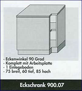 - Farbgestaltung von Arbeitsplatte, Korpus und Frontteilen in vielen Farben und Dekoren (nach Katalog)